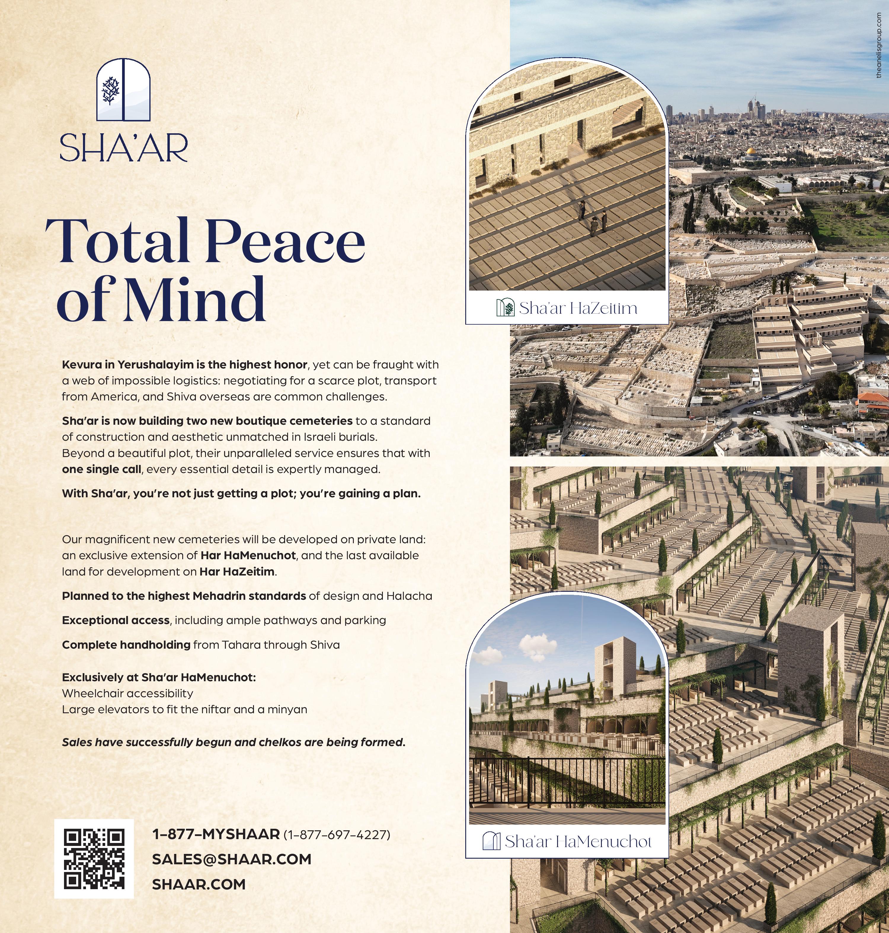Sha’ar is now building two new boutique cemeteries to a standard of construction and aesthetic unmatched in Israeli burials.Beyond a beautiful plot, their unparalleled service ensures that with one single call, every essential detail is expertly managed.